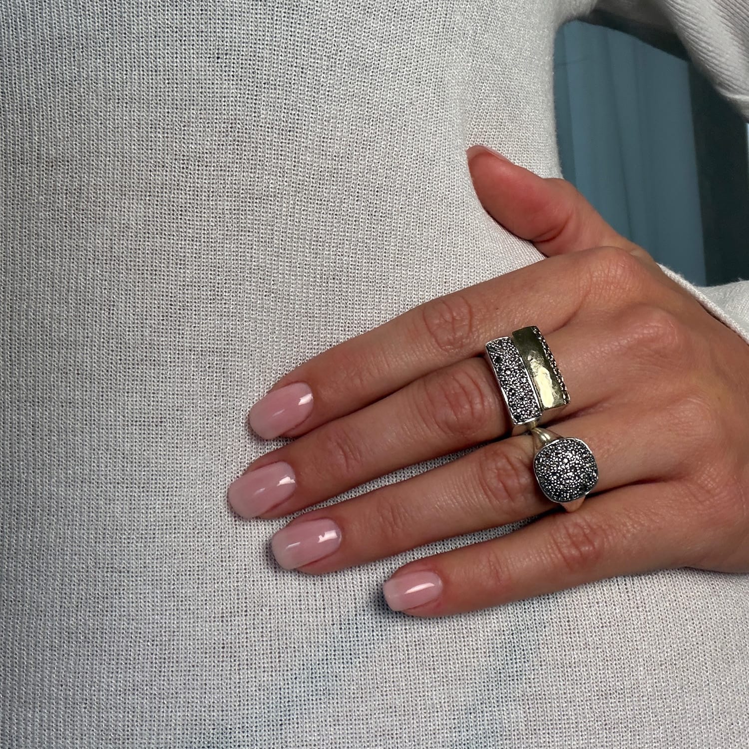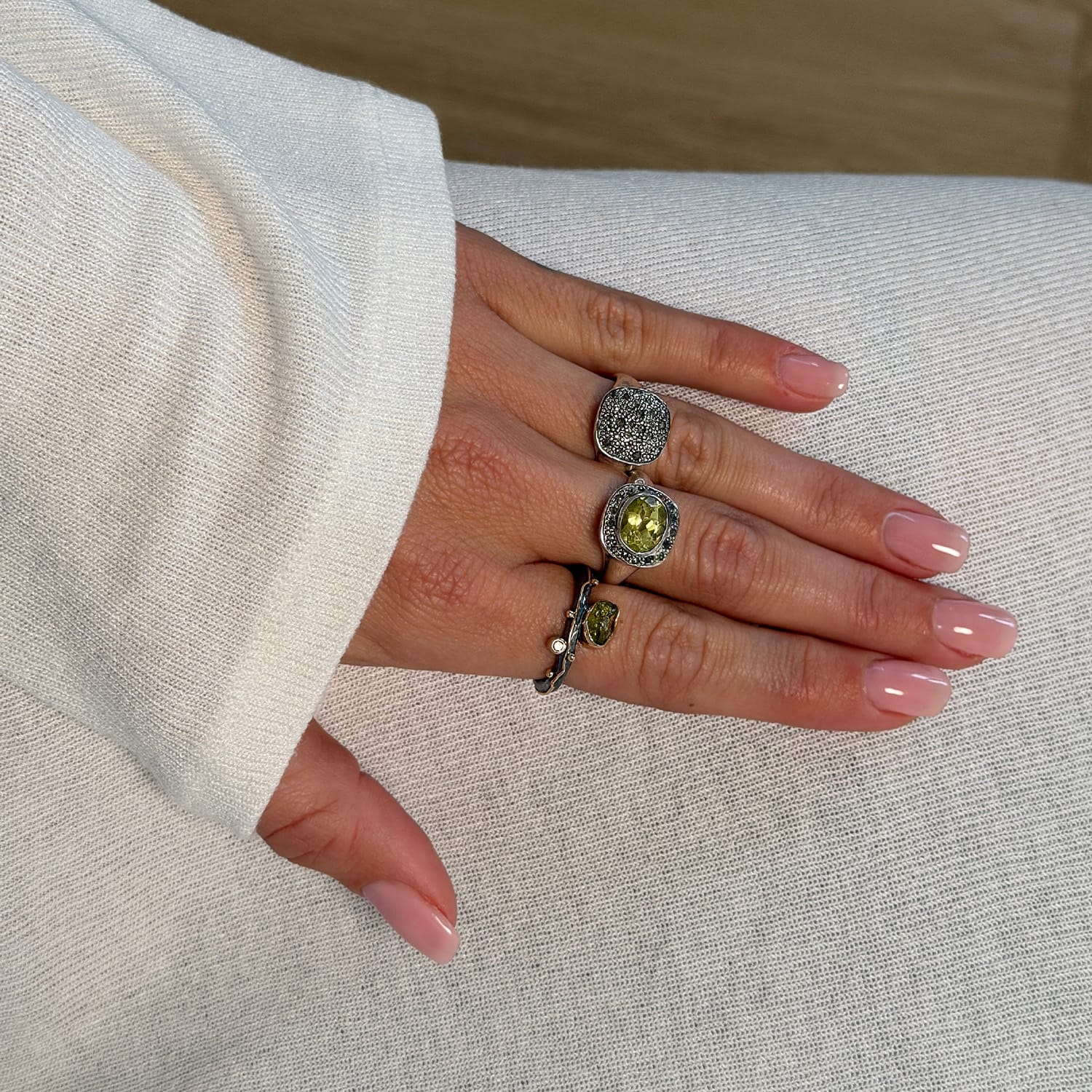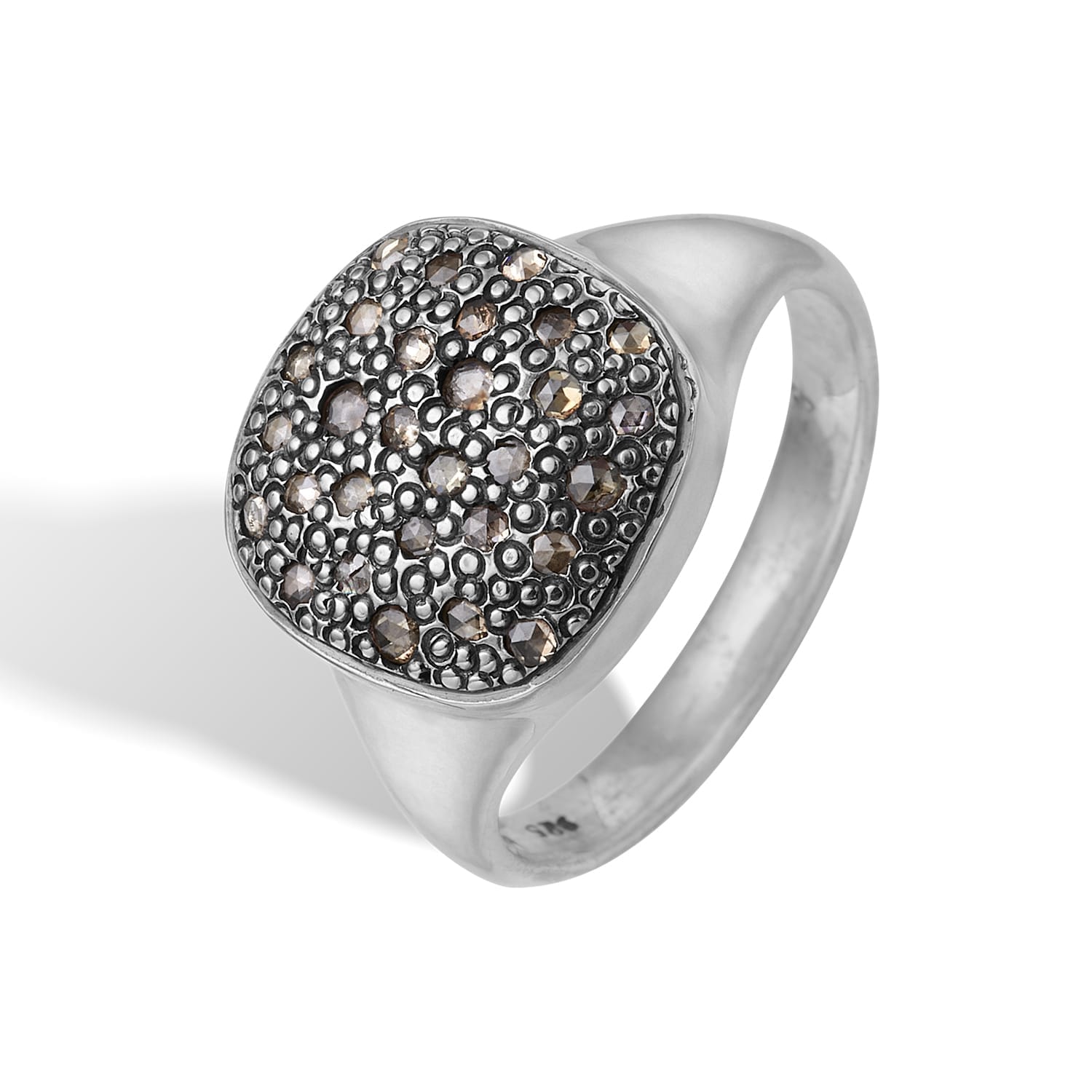 Sølv signet ring med diamanter. Frida Signet Pavé, er håndlavet i sterling sølv, heri pyntet med glitrende rosenslebne diamanter (0,57ct i alt) på toppen.