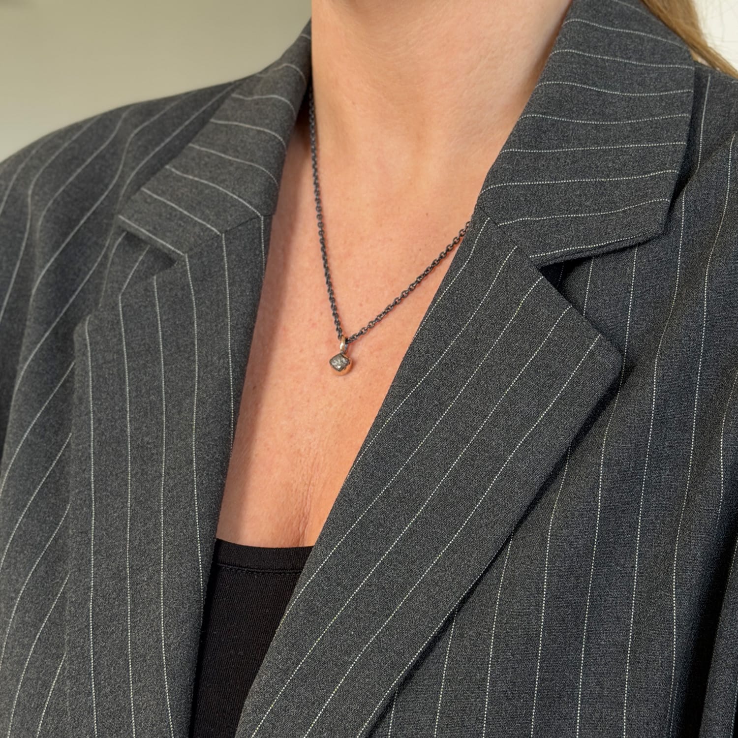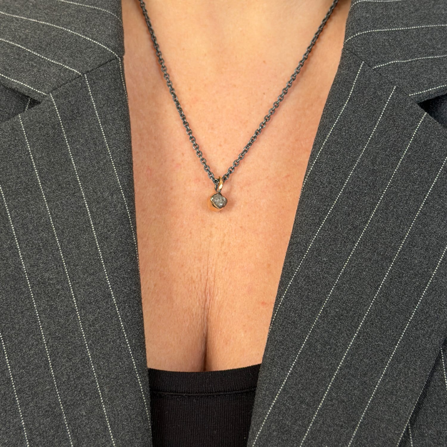 Anne Raw et guldvedhæng med rå diamant. Rå diamanten kan variere i udtryk og farve.
