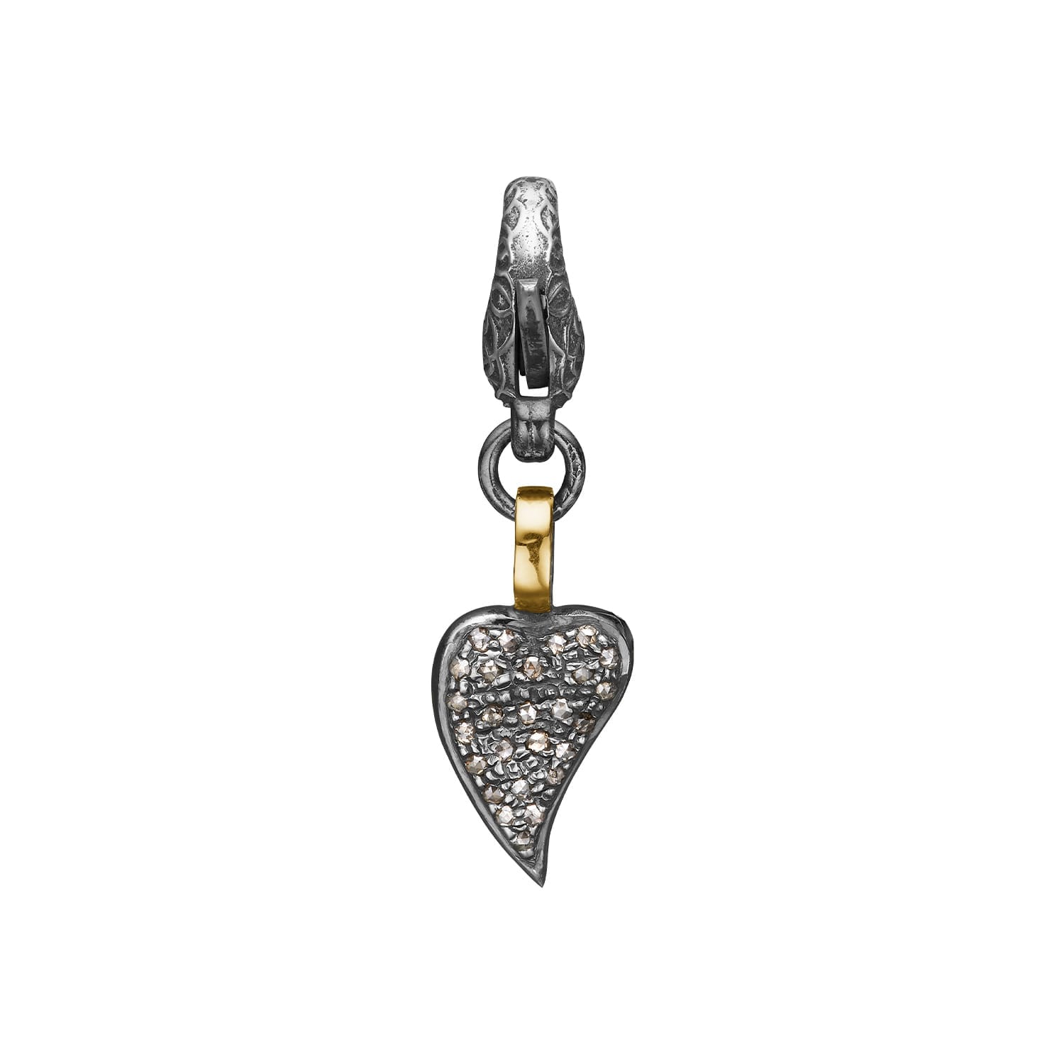 En ny fortolkning af vores velkendte Borean Heart Pavé vedhæng. Vedhænget her fungere også som en charm, da der er lavet en lås, som kan låses på større halskæder eller armbånd. Vedhænget er lavet af sterling sølv, med 14 karat guld ophæng. Herudover er hjertet pyntet med 0,35ct diamanter. Vedhænget har en højde på cirka 24mm uden låsen og cirka 42mm i alt.