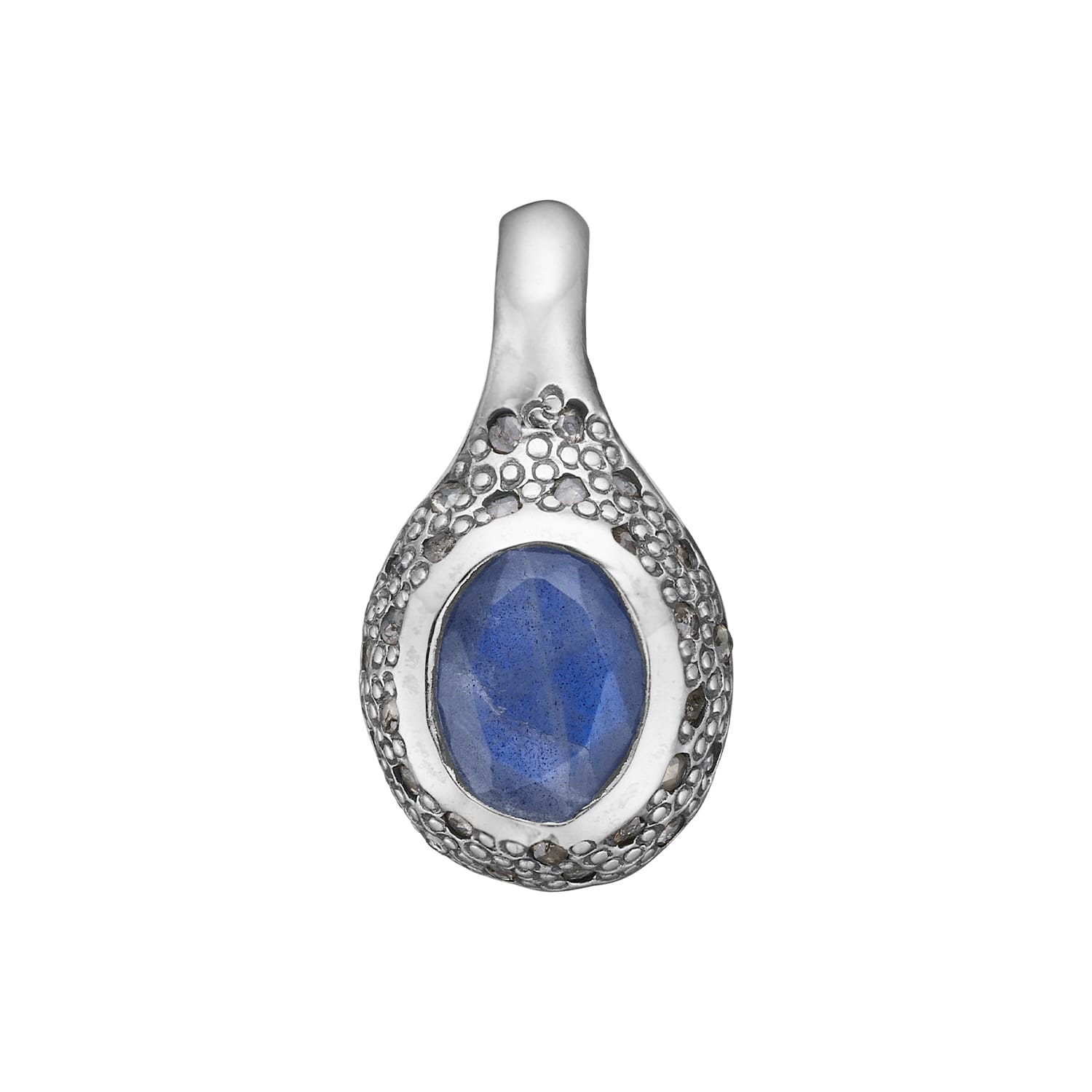 Sølv vedhænget Frida Pavé Green Amethyst, af 925 sterling sølv, prydet af rosenslebne diamanter (0.29ct i alt), som skinner om den flotte sarte grønne ametyst. Vedhænget måler cirka 20x11mm.
