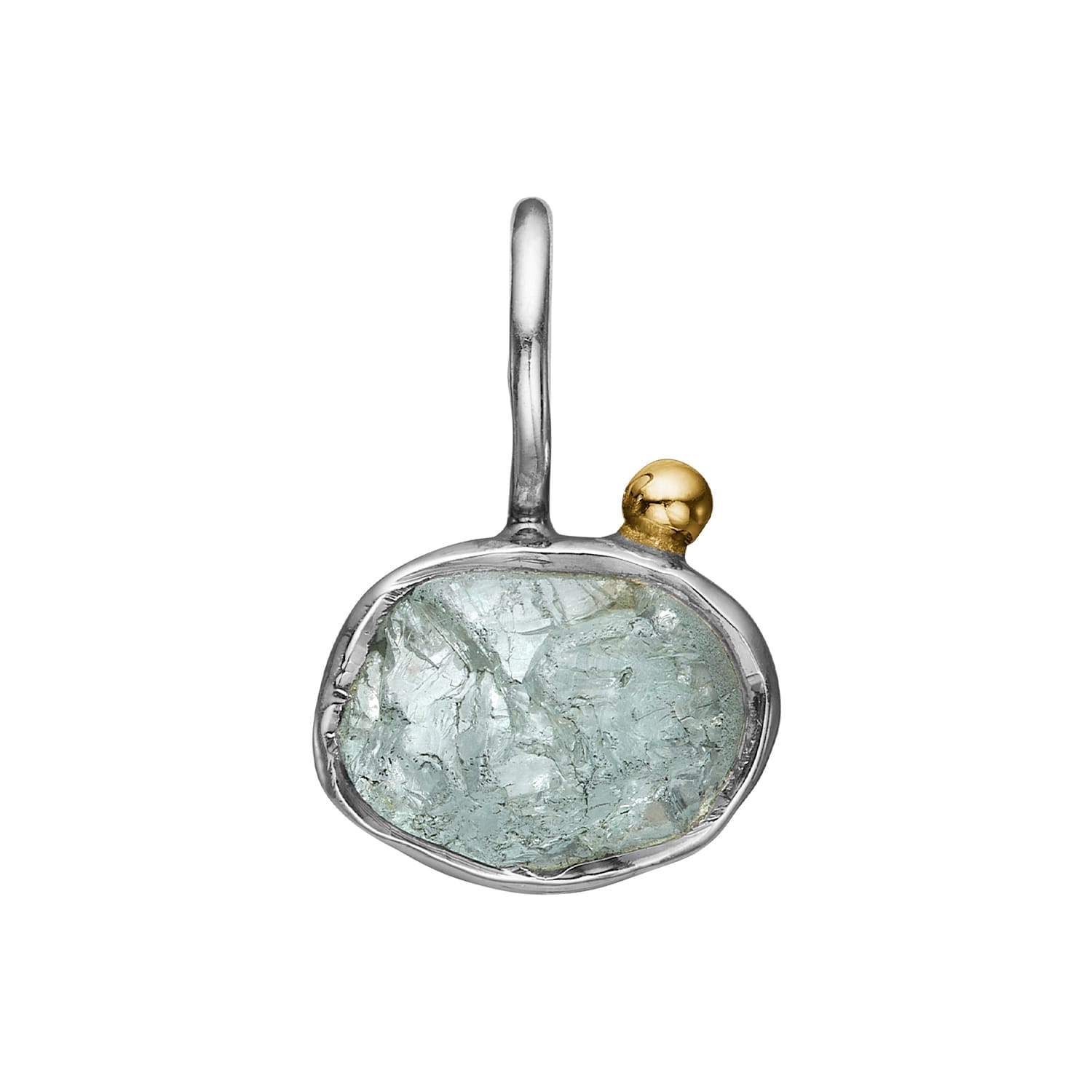 Sølv vedhæng med en blå rå akvamarin sten. Lavet i sølv og pyntet med en 14 karat guldkugle.